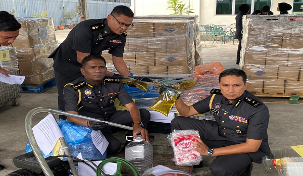 Turut dirampas mesin pam, gunting, plastik bungkusan minyak pelbagai jenama serta beberapa dokumen berkaitan, dengan nilai keseluruhan rampasan dianggarkan melebihi RM16,000.