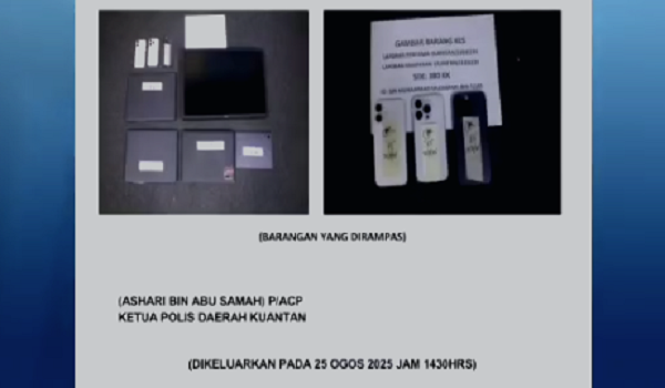Ketua Polis Daerah Kuantan Asisten Komisioner Ashari Abu Samah dalam kenyataan berkata, hasil pemeriksaan terhadap suspek membawa kepada rampasan tiga unit telefon bimbit.