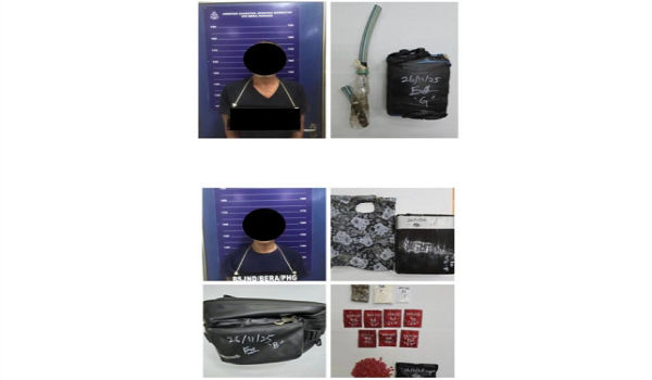“Tangkapan kedua pula di Kampung Bohor Baru, melibatkan seorang lelaki berusia 42 tahun yang bekerja sendiri. Polis merampas ganja seberat 1,057.64 gram dalam satu beg plastik hitam, selain 536 pil disyaki pil yaba, heroin, pil erimin 5, ganja dan syabu yang disimpan dalam beg pinggang suspek,” katanya.