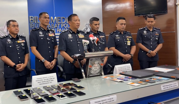 "Lima individu ditahan termasuk warga asing bersama barang kes iaitu11 telefon bimbit, tujuh komputer riba, dua monitor, satu CPU, satu papan kekunci dan dua modem dengan anggaran nilai keseluruhan RM30,000.