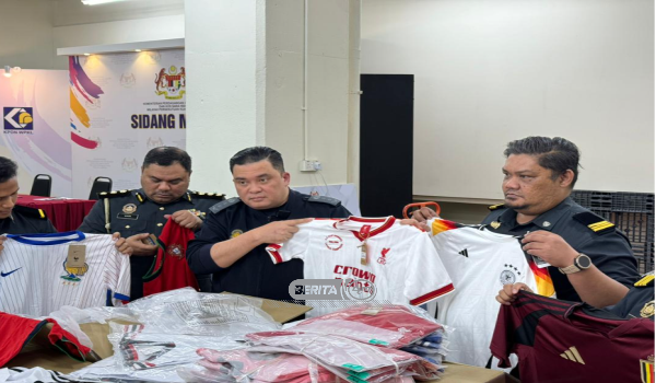 KUALA LUMPUR, 12 JUN – 6,230 jersi tiruan pelbagai jenama dianggarkan bernilai RM450,000 berjaya dirampas kerana disyaki dipakaikan cap dagangan secara salah pada Isnin lalu.