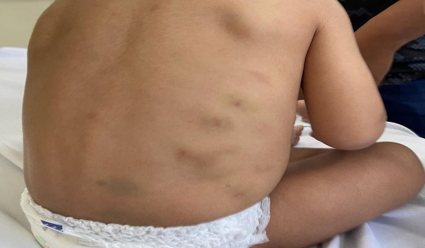 Dalam pada itu, pemilik akaun Instagram @faradelyn.aris mendakwa ketika sedang menukar lampin, suaminya melihat banyak kesan lebam di belakang badan anaknya itu pada 5 Disember.