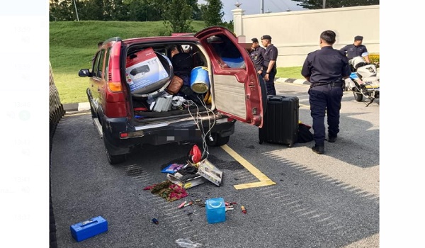 Pemeriksaan dilakukan ke atas kenderaan tertuduh dan menjumpai sebilah parang bersarung hitam berukuran 17.5 inci dalam bonet kereta. Kedua-dua tertuduh ditangkap dan siasatan mendapati mereka tiada sebarang urusan yang sah untuk memasuki Istana Negara.