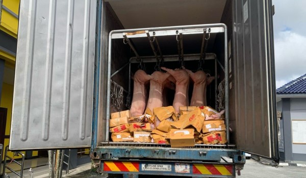 PASIR MAS, 14 Januari – Jabatan Kastam Diraja Malaysia (JKDM) Kelantan merampas sebanyak 12,980 kilogram (kg) daging babi sejuk beku bernilai RM116,820 selepas menahan sebuah lori di tepi Jalan Kampung Gertak Serong, di sini pada 4 Januari lalu.