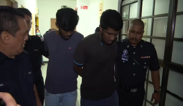 Tertuduh, P. Jagdeeshraj, 20 dan P. Vasantharaj, 21, mengangguk faham selepas pertuduhan dibacakan di hadapan Majistret Nurul Farahah Mohd Suah.