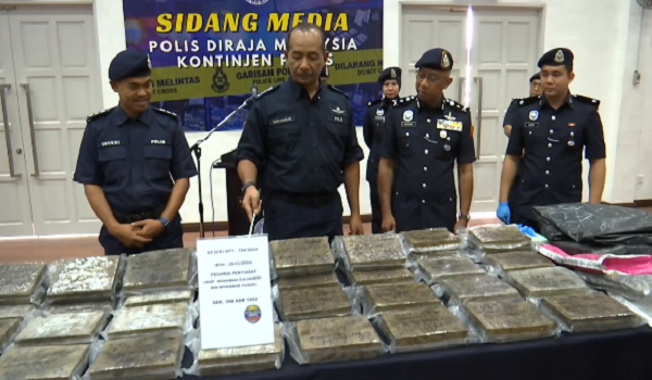 “Kita dapati di dalam kenderaan itu ada bungkusan- bungkusan mengandungi dadah jenis ganja dan selepas ditimbang kita dapati beratnya lebih kurang 56 kg membawa nilai RM173,600 dan dengan jumlah berat ini boleh menampung penggunaan kepada lebih 200,000 penagih,” katanya.