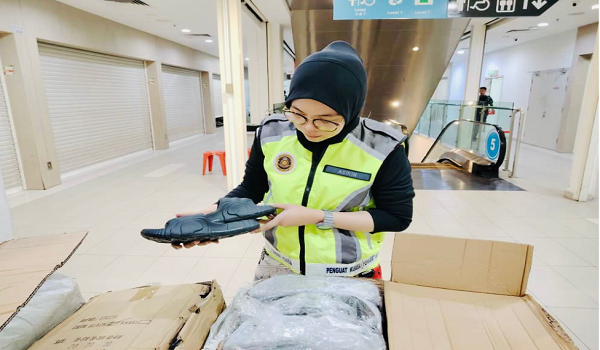 KUALA LUMPUR, 27 Julai-Kementerian Perdagangan Dalam Negeri dan Kos Sara Hidup (KPDN) Kuala Lumpur berjaya menyita 2,070 pasang selipar tiruan berjenama dalam serbuan terhadap tujuh buah premis perniagaan dan stor penyimpanan di sebuah kompleks perniagaan yang beroperasi di Lorong Haji Taib, Chow Kit, di sini.