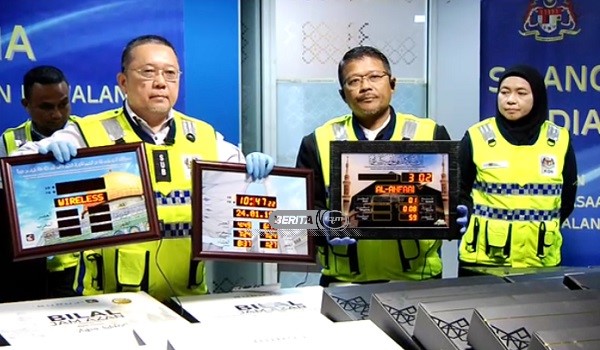 PUTRAJAYA, 19 Januari- Sebanyak 3,254 unit jam dinding digital mengandungi audio 30 juzuk Al-Quran dengan fungsi azan yang dijual tanpa kelulusan disita Kementerian Dalam Negeri menerusi serbuan di empat premis di sekitar Lembah Klang pada hujung bulan lalu.