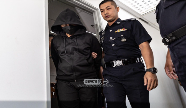 Terdahulu tertuduh tiba di Mahkamah Majistret Ipoh dengan berpakaian serba hitam dan memakai pelitup muka kira-kira pukul 9 pagi.