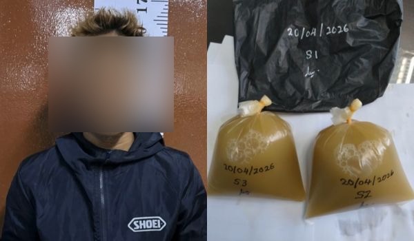 - Pemeriksaan motosikal menemui dua bungkusan disyaki air ketum; ujian air kencing suspek positif syabu.
