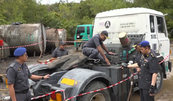 Turut dirampas dan disita lima buah kenderaan, sepuluh unit tong jenis Intermediate Bulk Container, IBC , tiga buah skid tank, serta peralatan-peralatan lain yang ditemui di lokasi serbuan.