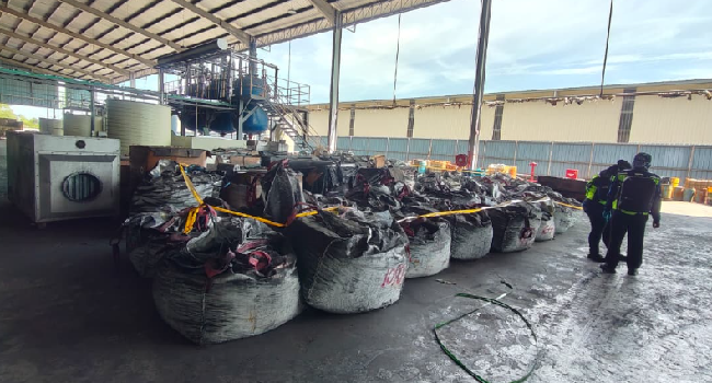 Turut ditemui, kira-kira 20 metrik tan serbuk logam yang telah diperoleh kembali di dalam premis tersebut yang aktiviti pemerolehan kembali buangan terjadual tanpa kelulusan Laporan Penilaian Kesan Kepada Alam Sekeliling (EIA) serta lesen sah daripada pihak berkuasa.