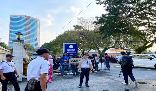 Pengamal media telah berkumpul di luar kompleks mahkamah seawal pada pukul 7.30 pagi untuk membuat liputan.