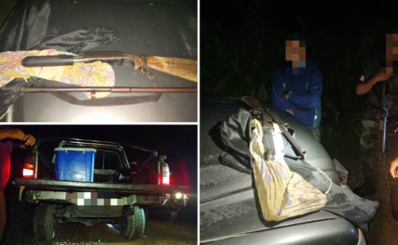 “Pemeriksaan di dalam kereta berkenaan menemukan selaras senapang patah jenis Remington 870 Express Magnum beserta 81 butir peluru hidup dan beberapa peralatan lain tanpa dokumen pemilikan sah,