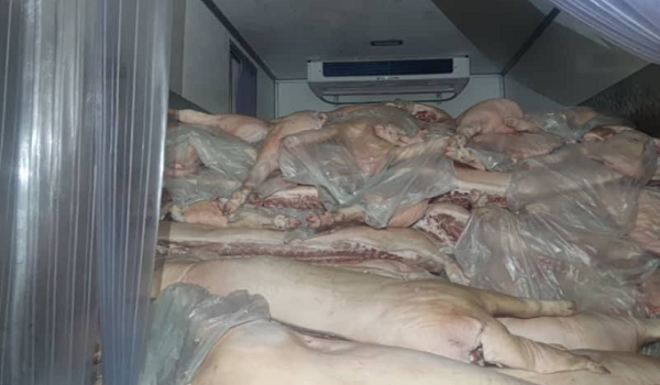 “Pemeriksaan ke atas lori terbabit menemui muatan karkas babi di bahagian belakang kenderaan. Pemandu gagal mengemukakan sebarang dokumen yang sah berhubung barangan tersebut, yang disyaki diseludup dari Thailand.