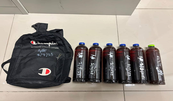 Hasil pemeriksaan menemukan dua botol air ketum serta satu kilogram daun ketum di dalam bonet kenderaan suspek. Nilai rampasan termasuk kenderaan dianggarkan RM 5,076.00. Kes disiasat mengikut Seksyen 30(3) Akta Racun 1952.