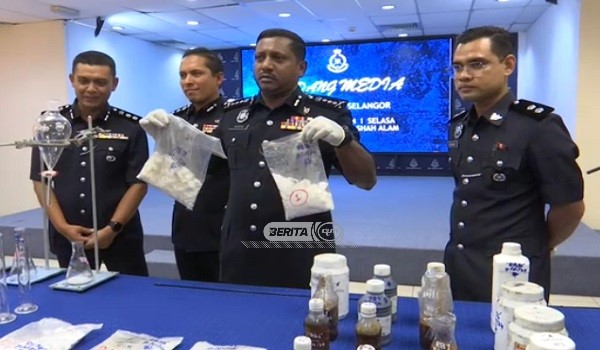 “Sebanyak 440 gram ketulan kristal methamphetamine, 1.03 kilogram (kg) cecair methamphetamine dan 53.03kg serbuk ephedrine, pelbagai peralatan dan bahan kimia bagi tujuan penghasilan dadah dirampas.
