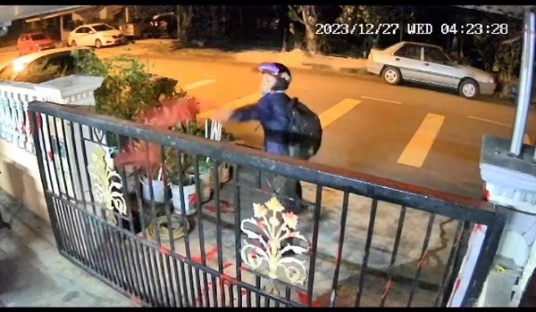 Rakaman kamera litar tertutup (CCTV) di rumah mangsa mendapati perbuatan tersebut telah dilakukan oleh seorang lelaki yang menunggang motosikal.