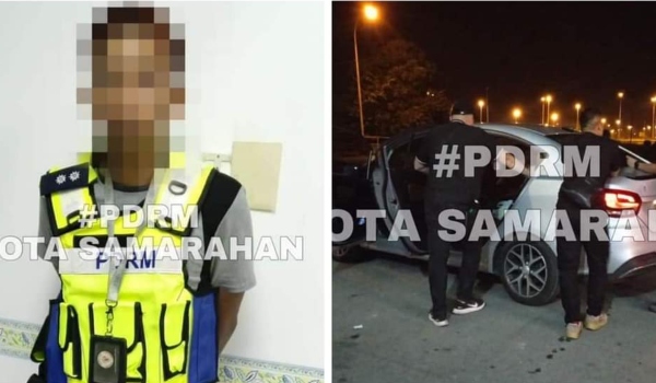 Ketua Polis Daerah Kota Samarahan, Timbalan Penguasa Polis (DSP) Jaimi Husin berkata, lelaki tersebut berada dalam sebuah kenderaan bersama seorang rakan, didapati memakai vest polis berpangkat Inspektor serta membawa sarung pistol.