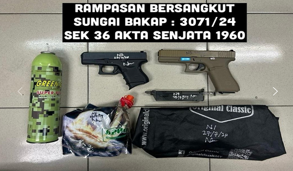 “Kami merampas dua pucuk pistol angin jenama We Tactical bersama kelopak tanpa peluru, satu kelopak dan satu bungkusan ball bearing dan satu botol tertera tulisan green gas di rumah itu,” katanya dalam kenyataan hari ini.