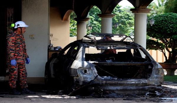 Dalam kejadian awal pagi 10 Jan lepas, rumah Ngeh dipercayai dilontar dengan molotov cocktail menyebabkan kebakaran yang memusnahkan sebuah kereta miliknya, manakala dua kenderaan lagi mengalami kerosakan.- BERNAMA