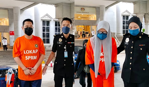 Kedua-dua suspek lelaki dan perempuan berusia lingkungan 50-an ditahan antara pukul 5.00 petang hingga 7.00 malam tadi ketika hadir memberi keterangan di Ibu Pejabat SPRM.