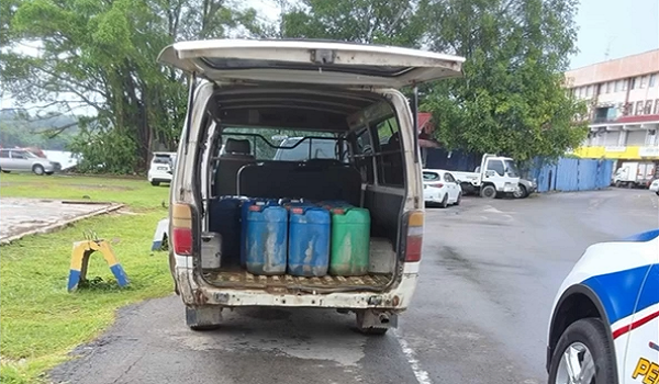 LABUAN, 29 Ogos – Sebuah van dengan muatan 20 gelen plastik mengandungi kira-kira 400 liter petrol, dirampas Kementerian Perdagangan Dalam Negeri dan Kos Sara Hidup (KPDN) Labuan dalam Ops Tiris, semalam.
