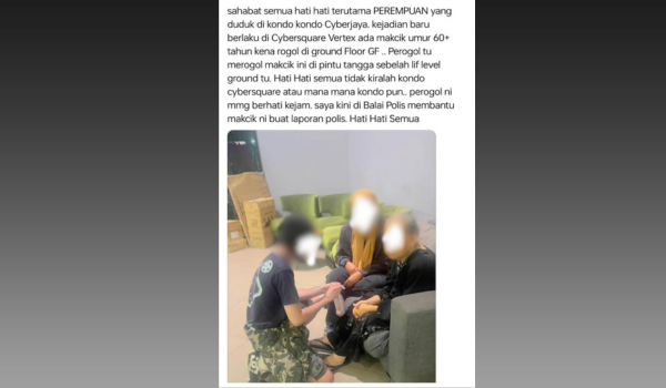 Terdahulu, tular di media sosial seorang wanita warga emas dirogol di kawasan sebuah apartment.