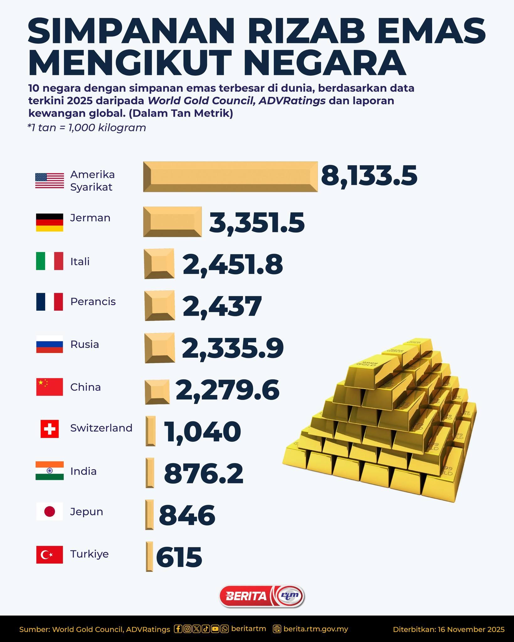 SIMPANAN RIZAB EMAS MENGIKUT NEGARA.