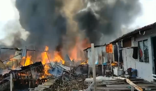 LABUAN, 2 April- 10 keluarga Skim Penempatan Masyarakat Pelarian (SPMP) hilang tempat tinggal apabila kediaman mereka hangut terbakar dalam kebakaran, pada petang Sabtu.