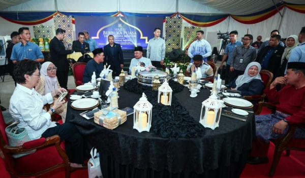 Perdana Menteri tiba di Angkasapuri Kota Media pada pukul 6.53 petang disambut Menteri Komunikasi Datuk Fahmi Fadzil dan Timbalan Menteri, Teo Nie Ching bersempena dengan Majlis Berbuka Puasa Bersama Pengamal Media.