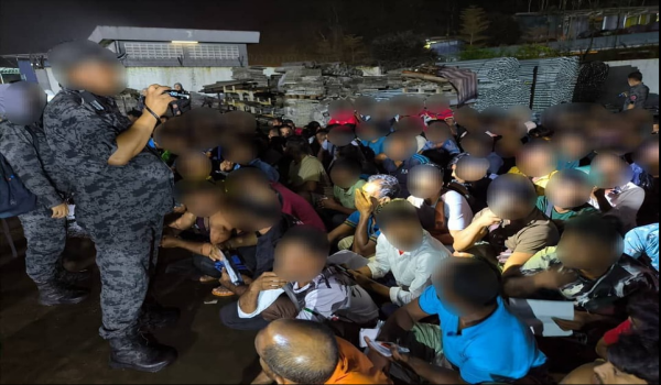 Dalam serbuan berasingan, seramai 120 PATI dicekup di kawasan kuarters pekerja di tapak perkilangan, Ulu Choh, Pontian.