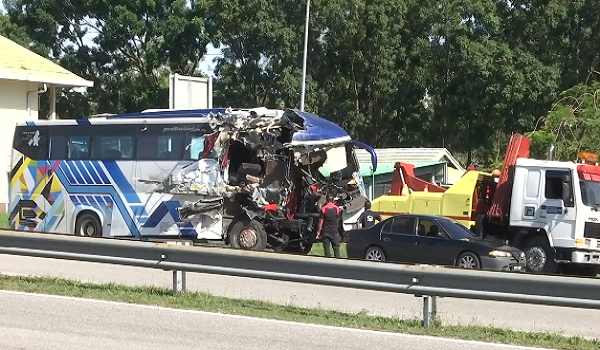 (Gambar bas yang terbabit kemalangan di Kilometer 285.5, Lebuhraya Utara-Selatan,