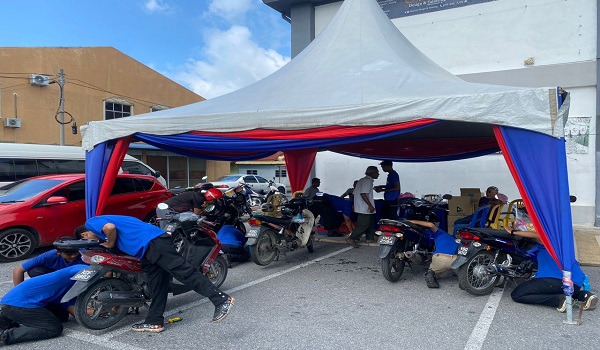 SIMPANG EMPAT, 20 Ogos- Sebanyak 200 pemilik motosikal tidak melepaskan peluang bagi mendapatkan perkhidmatan menukar minyak hitam motosikal secara percuma yang disediakan GIATMARA Arau.