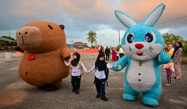 • Murid tiba awal sekitar pukul 7.00 pagi dan disambut dua maskot untuk menceriakan hari pertama.