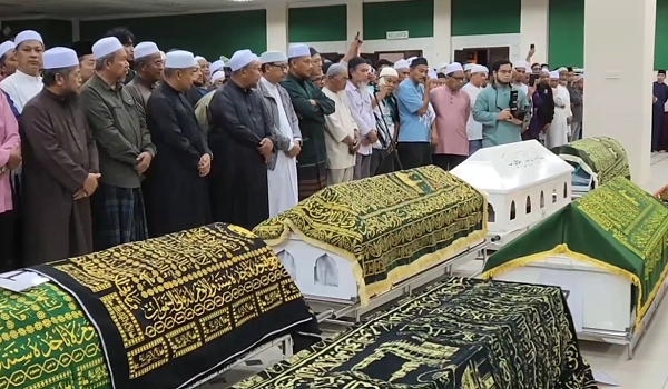 Lebih 3,000 jemaah melaksanakan solat jenazah 13 penuntut UPSI di Masjid Hadhari Jerteh Besut.