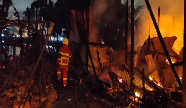 KUCHING, 12 Disember– Lima buah rumah jenis tidak kekal di alamat Lorong Satu Kampung Pulo Ulu musnah seratus peratus dalam kejadian kebakaran malam tadi.