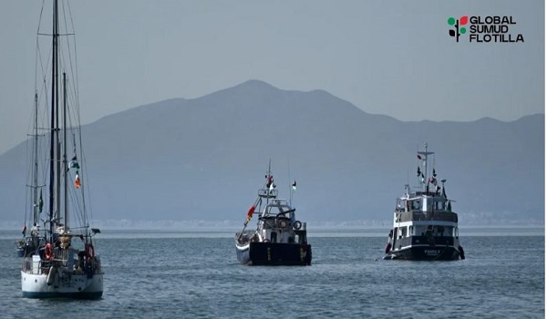 "17 kapal yang disertai 11 pelayar Malaysia dan seorang pelayar Brunei mewakili Sumud Nusantara kini menuju Gaza melalui Global Sumud Flotilla.