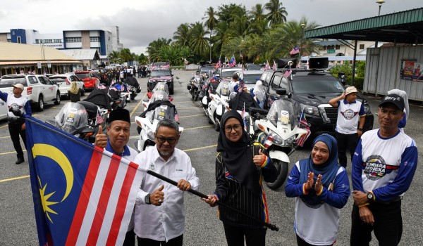 Terdahulu, Hasmiza menerima penyerahan konvoi KMJG dari negeri Perak yang diketuai pengarah JaPen negeri, Yosri Abu Mahsin.