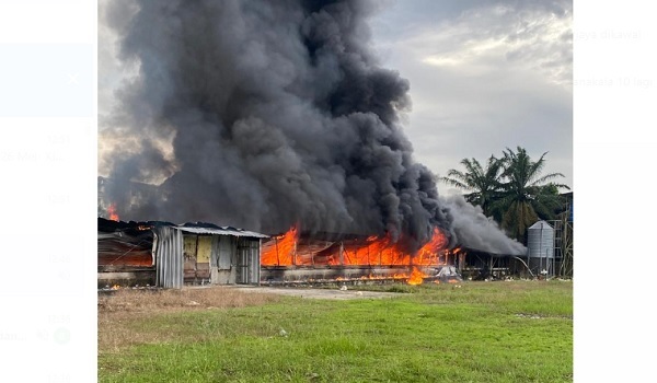 Kebakaran terbabit telah memusnahkan sekitar 80 peratus reban berkenaan manakala 10 lagi reban tidak terjejas.