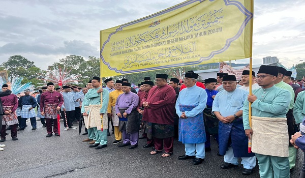 BUKIT PALAH, MELAKA 16 September- Hujan renyai tidak menghalang lebih 6,000 peserta menyertai perarakan sempena Sambutan Maulidur Rasul 1446H Peringkat Negeri Melaka.
