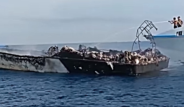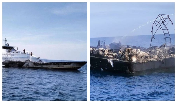 Insiden kebakaran itu telah merebak ke seluruh bahagian feri dan dianggarkan musnah seratus peratus.
