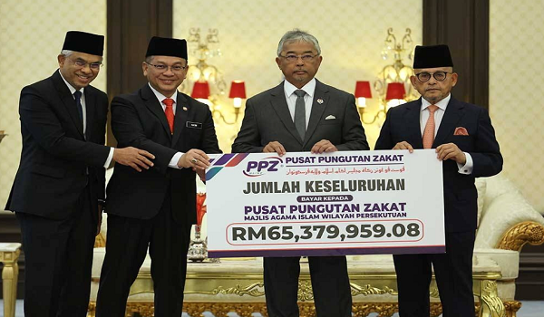 KUALA LUMPUR, 14 November– Yang di-Pertuan Agong Al-Sultan Abdullah Ri’ayatuddin Al-Mustafa Billah Shah berkenan menerima bayaran zakat perniagaan berjumlah lebih RM65 juta bagi pihak Pusat Pungutan Zakat Majlis Agama Islam Wilayah Persekutuan (PPZ-MAIWP) hari ini.
