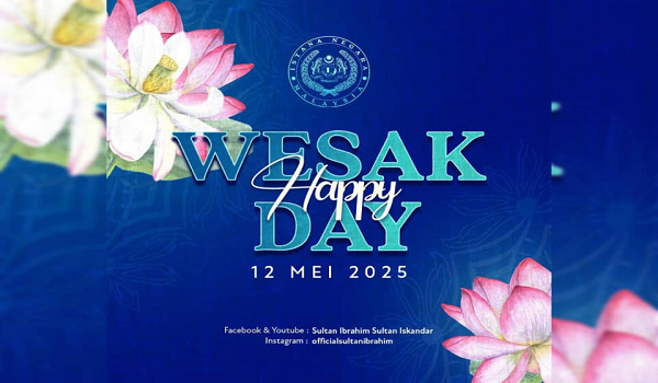 “Bersama-sama kita membina masa depan yang lebih aman, bersatu padu dan makmur. Selamat Hari Wesak diucapkan kepada semua penganut agama Buddha di negara ini,” titah Seri Paduka Baginda dalam satu kenyataan hari ini.