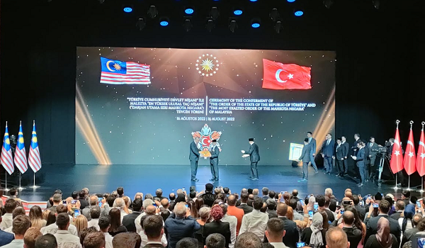 ANKARA, 17 Ogos 2022- Yang di-Pertuan Agong Al-Sultan Abdullah Ri’ayatuddin Al-Mustafa Billah Shah berkenan menerima darjah tertinggi Kerajaan Turkiye, ‘Turkish Order of the State’ sempena lawatan negara ke Turkiye.