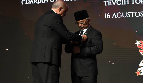 Pada majlis sama, Al-Sultan Abdullah turut berkenan mengurniakan anugerah darjah tertinggi negara, Darjah Utama Seri Mahkota Negara (D.M.N) kepada Presiden Erdogan.