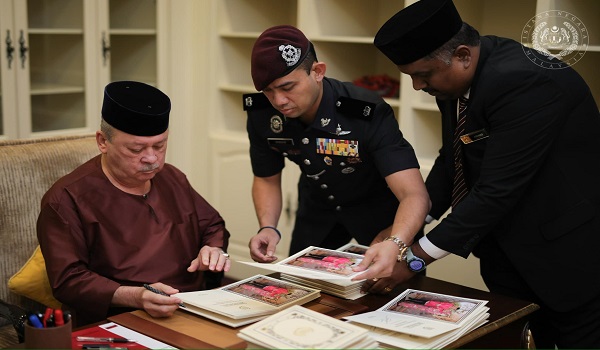 Pada hari ini, Seri Paduka Baginda berkenan menandatangani sebanyak 200 kad ucapan.