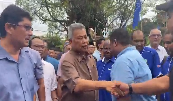(Datuk Seri Ahmad Said bersalaman dengan penyokongnya di perkarangan kediaman beliau di sini)