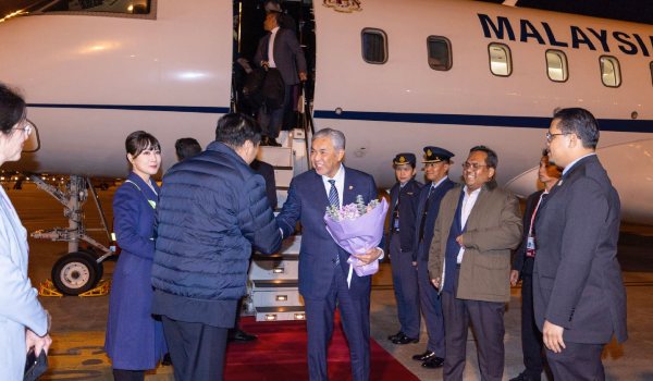 Ketibaan Timbalan Perdana Menteri disambut Duta Malaysia ke China, Datuk Norman Muhamad dan Konsul Jeneral Malaysia di Shanghai, Mohd Shahafeez Shaharis.