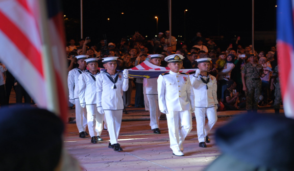 Kemuncak sambutan menyaksikan perarakan masuk anggota Rejimen 512 Askar Wataniah membawa Jalur Gemilang, sebelum penyerahan rasmi bendera kepada Pasukan Simpanan Tentera Laut Diraja Malaysia (PSTLDM), diiringi alunan lagu Negaraku yang bergema megah.